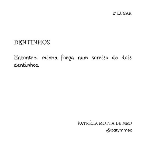Parabéns pela sua classificação no concurso. Você é realmente uma excelente microcontista. E os contos premiados são ótimos. Só para ilustrar, vai esse aqui, de Dalton Trevisan: